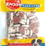 Recompense pentru caini Enjoy Carnivore Sandwich cu pui si cod 300 g sunt potrivite pentru caini adulti si juniori.
